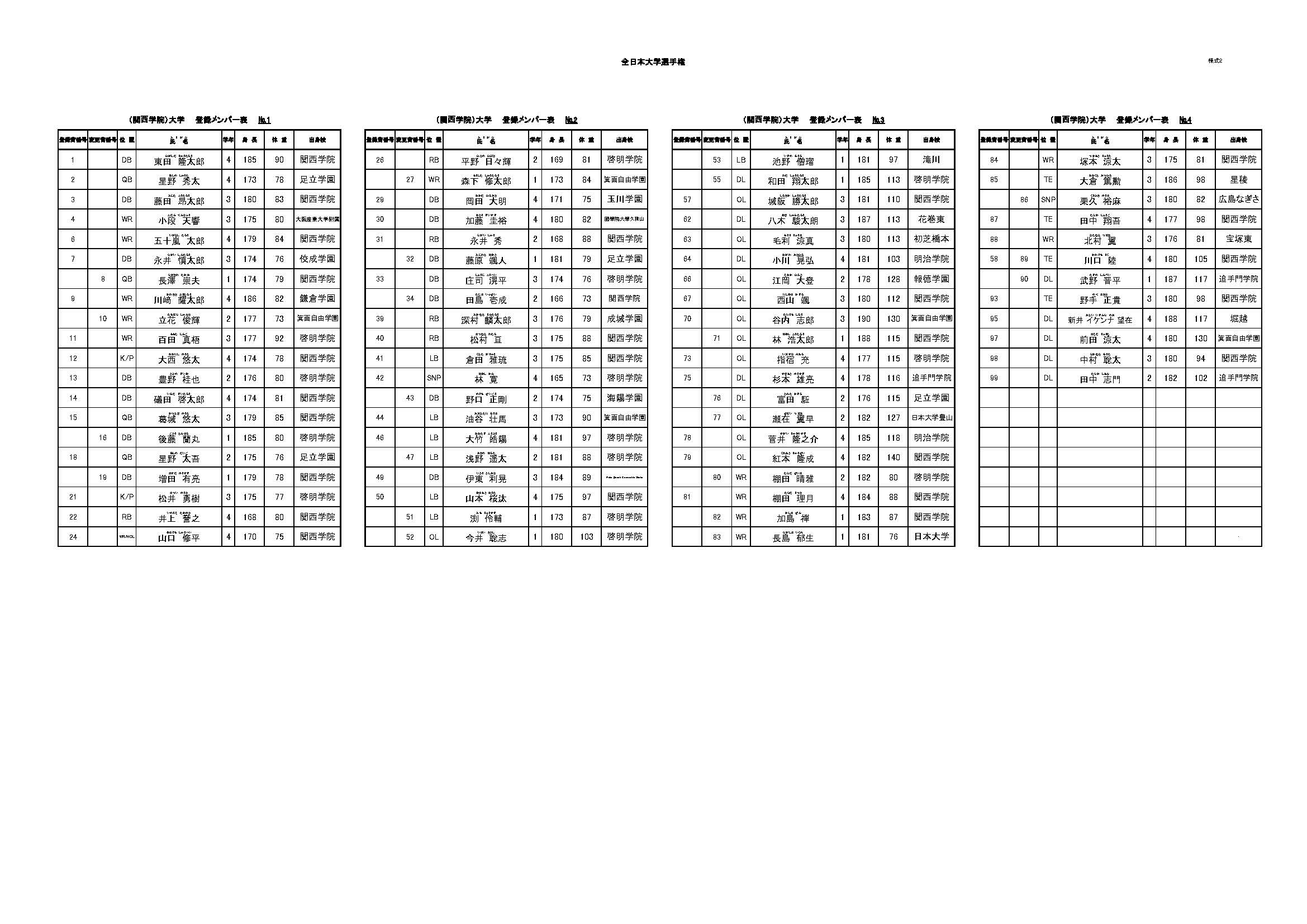 | 46 | LB | 4 | 大竹 皓陽 |