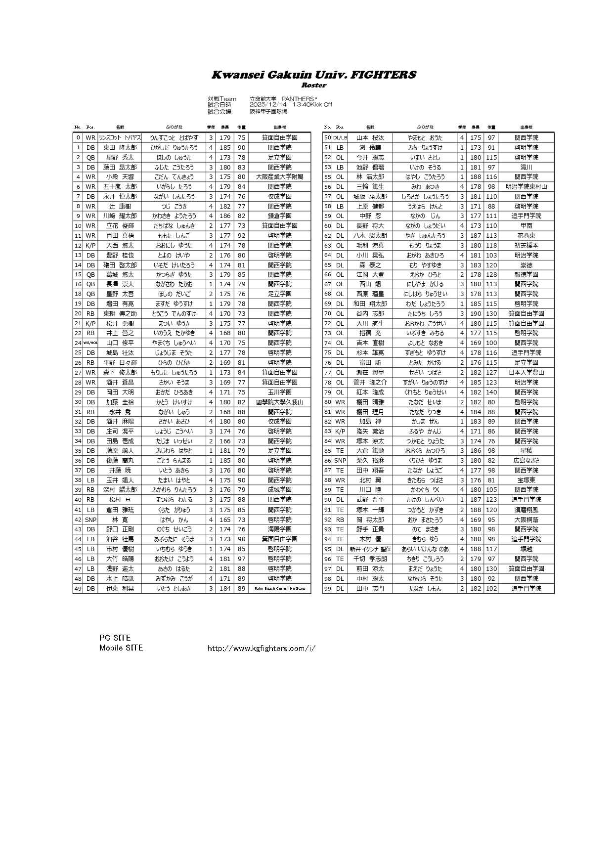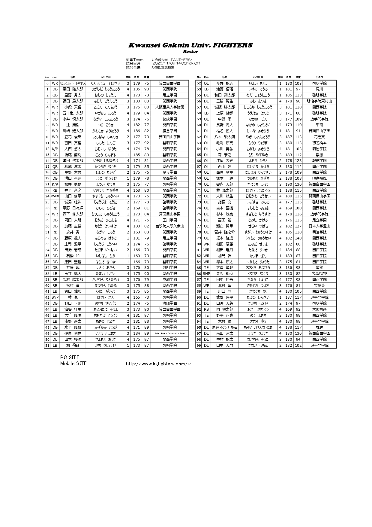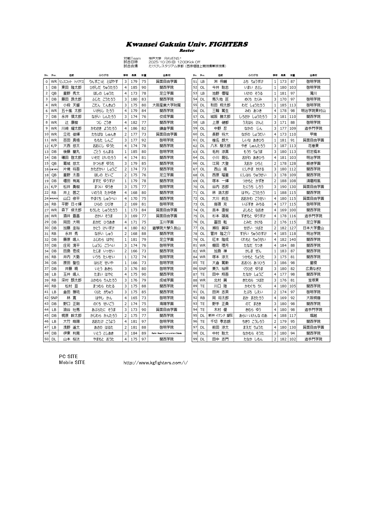 | 6 | WR | 4 | 五十嵐 太郎 |