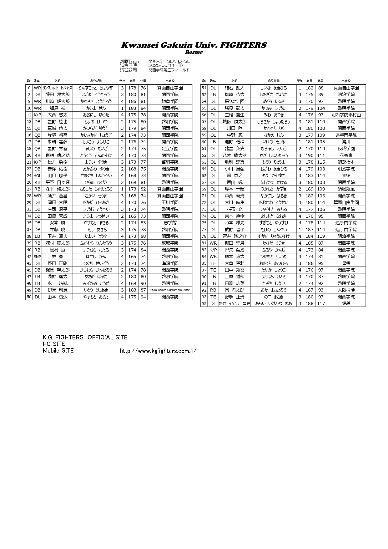 FIGHTERS ROSTER(メンバー表/PDF)